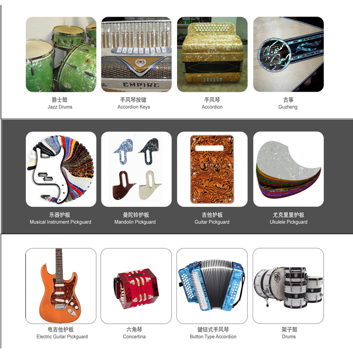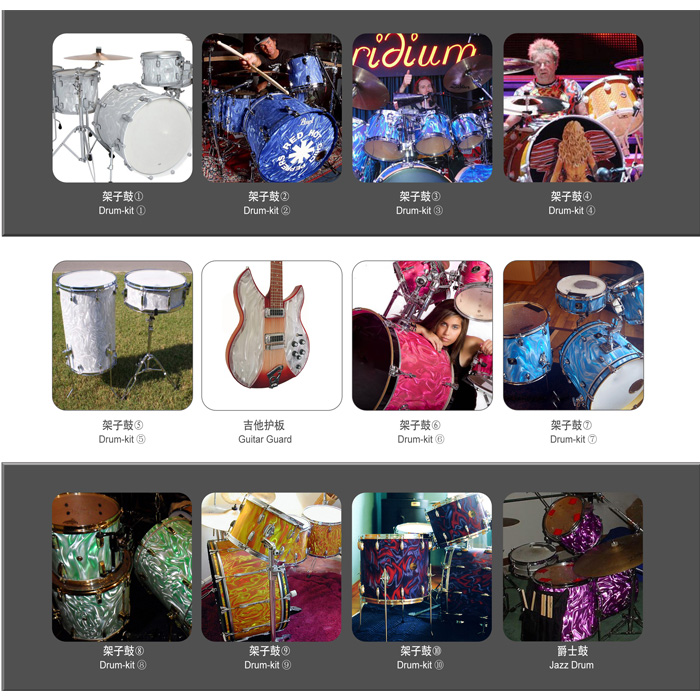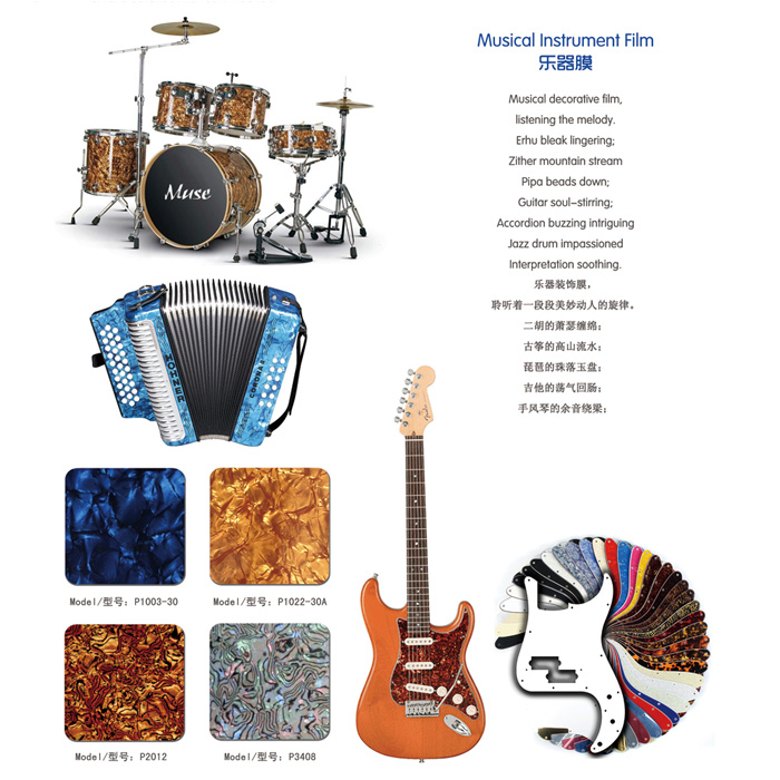 樂器裝飾板、裝飾膜,聆聽著一段段美妙動人的旋律,只應(yīng)天上不在人間。二胡的蕭瑟纏綿;古箏的高山流水;琵琶的珠落玉盤;吉他的蕩氣回腸;手風琴的余音繞梁;爵士鼓的慷慨激昂。