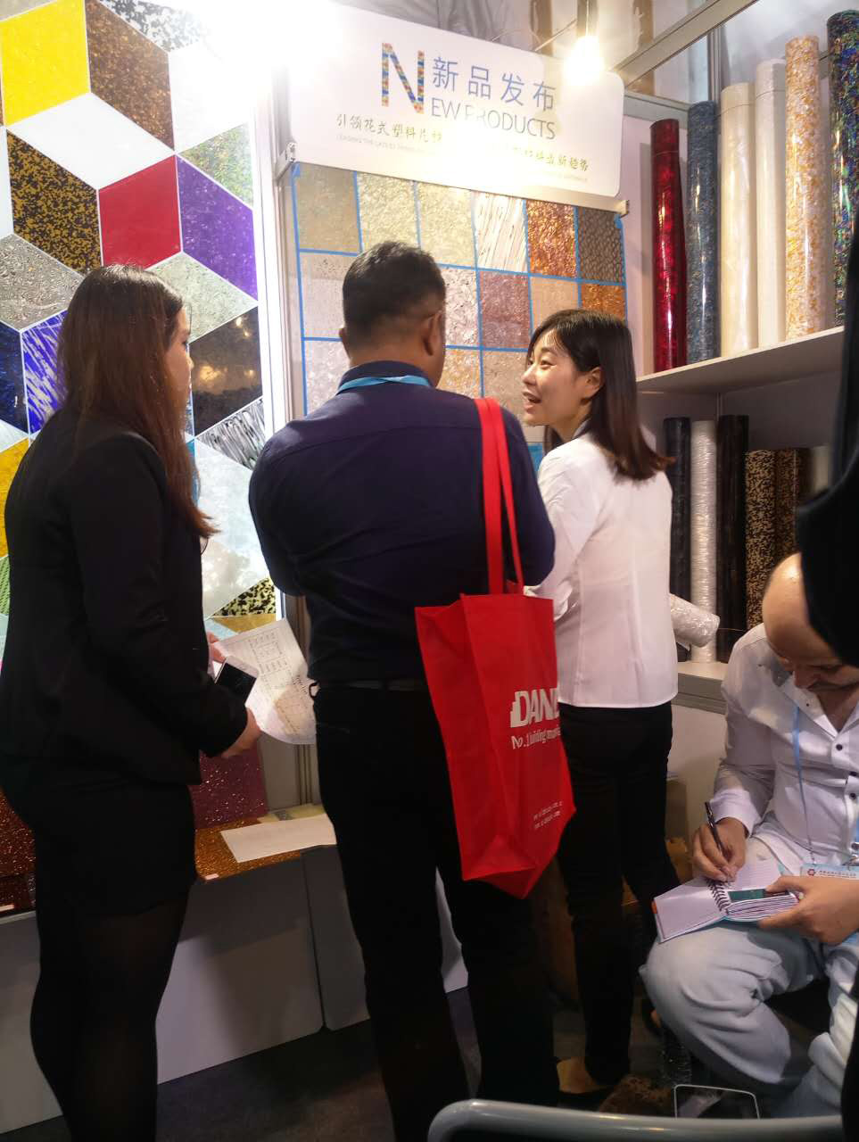 17年以來,我司加大了新品的研發(fā)和創(chuàng)新力度,截止參展前我司以研發(fā)近百款新品,新品的不斷推出充分展現(xiàn)了我司的研發(fā)和創(chuàng)新能力,很多對(duì)多彩裝飾材料產(chǎn)品感興趣的客戶駐足詢問,其中不乏一些往年積累的老客戶。