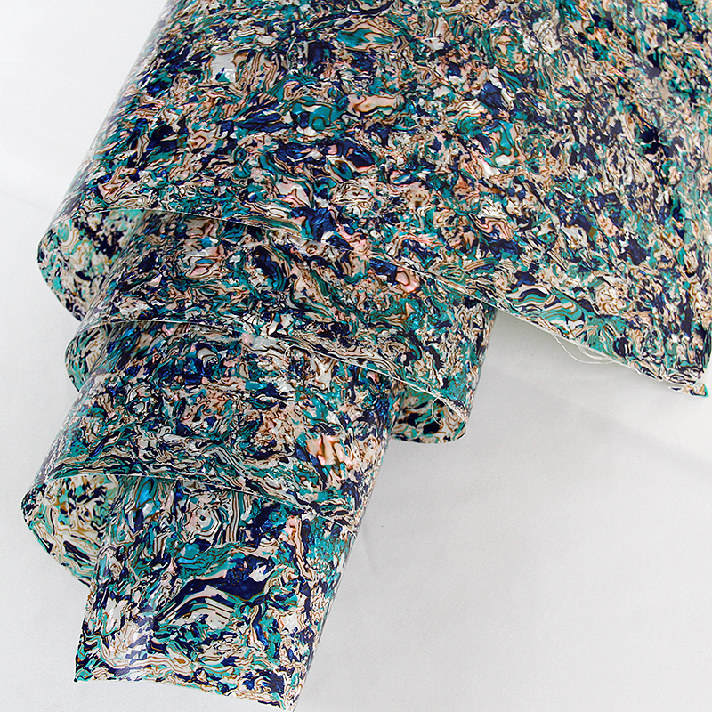 3、它質(zhì)地柔韌,不易折斷,并具有色澤鮮艷、花色繁多、閃光性好、有彈性、耐水、耐油、耐酸、強(qiáng)度高、容易加工成形等。